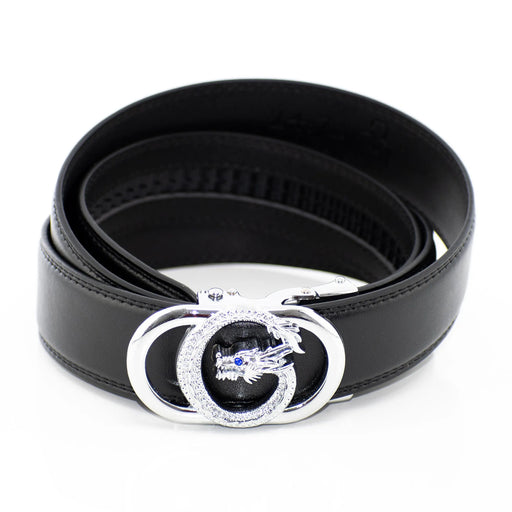 An intricately detailed, eastern styled dragon of embedded faux-diamond accents a classy 'V' motif in this showy, adjustable belt buckle. Features:...