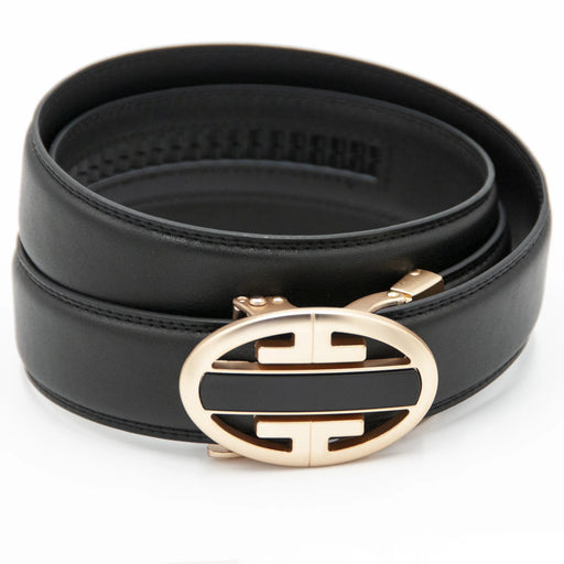 This buckle boasts finely textured detailing elegantly flanked by dual, vertically aligned Grecian inlays. Features: 100% Pure Leather Fully Adjus...
