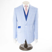 Blue 3-Piece Modern-Fit Plaid Suit With Peak Lapels