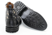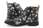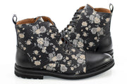 Black Floral Duo-Textured Lace-Up Zip Boot