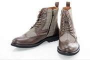 Handsome plaid and a fine wingtip brogue combine to create a dapper exterior for this designer boot featuring a quarter zipper and lace-up design perfect for a business or semi-casual look.