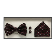 The perfect capstone to complete your outfit, this bow-tie is decorated by a showy diamond design motif. Includes matching pocket square and cufflinks.