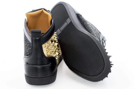 Black Glitter and Gold Spiked High-Top Lace-ups