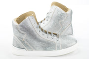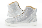 Featuring a striking rhinestone embedded upper accented by a savvy high-top design and wide laces to create instant street appeal for casual or formal outfits.