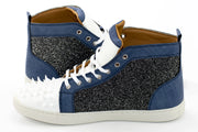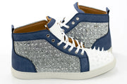 These stunning two-tone glitter sided high-tops with white spiked toes are edgy and fashionable whether you pair it with a solid color suit or a pair of jeans and a jacket.