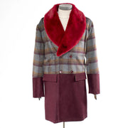 Plum Plaid Button-Down Overcoat With Removable Collar