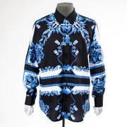 Highlighted by an intricate floral motif, this dress shirt's detailing and stark exterior design featuring embedded rhinestone create a bold style with added elegant flair. Match it with a suit or jacket for a sophisticated look at the club.