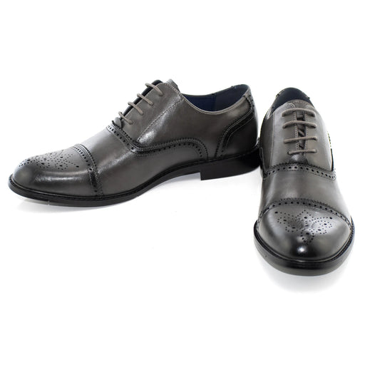 Gray Medallion Cap-Toe Oxford Dress Shoes