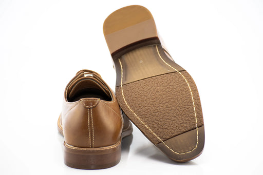 Camel Cap-Toe Lace-Up Derby Dress Shoes