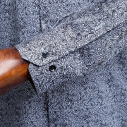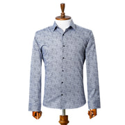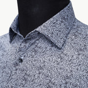 Navy Blue and White Paisley Satin Slim-Fit Fashion Shirt