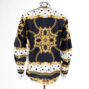 Black Polka Dot with Gold Flourish Rhinestone Dress Shirt