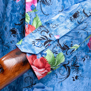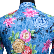 Sky Blue Floral Rhinestone Slim-Fit Fashion Shirt