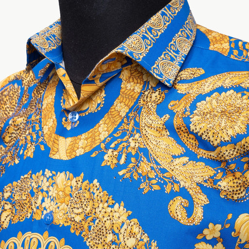 View full detailsBlue Gold Gilded Rhinestone Regular-Fit Dress Shirt
