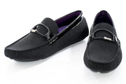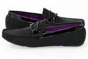 Black Beaded Smoking Loafer With Braided Leather Strap