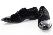 Unique patent leather design combined with plush velvet gives this attractive slip-on dress loafer a presence that is meant to be seen. Pairs great with tuxedo or tuxedo jacket. Will easily add a fashionable spin to your favorite outfits.