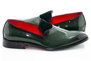 Striking patent leather and attractive color combine for an eye-catching mix of luxury and flair in this Venetian style loafer with a two-toned outsole and an easy to wear, slip-on design. A great accent for flashier tuxedo or suit jackets.
