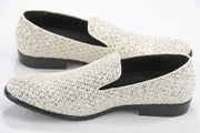 White Glitter Pattern Smoking Loafers