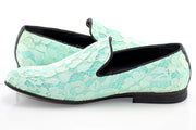 Suave velvet and intricately designed Grecian rhinestone combine to create an eye-catching, exotic look in this slip-on Venetian loafer with a grosgrain topline and a comfortable fit. Adds a twist to almost any formal outfit.