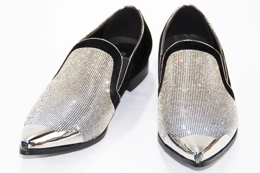 View full detailsBlack Velvet & Silver Rhinestone Smoking Loafers With Metal Tip