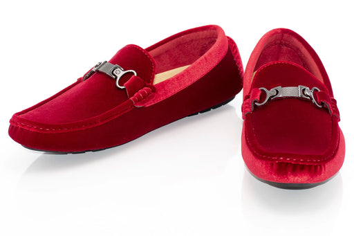 This stylish velvet slip-on driving shoe with its metal clasp is made to be worn with no-show socks or barefoot. Dress it up with one of our suits...