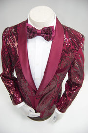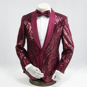 Burgundy Pattern Sequined Slim-Fit Dinner Jacket