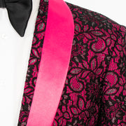 Fuchsia and Black Lace Slim-Fit Dinner Jacket