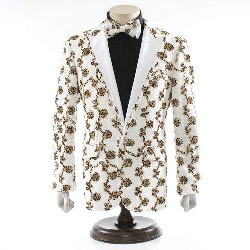 This dinner jacket with its gold embroidered paisley pattern is flashy and fashionable. Don't just be the center of attention at any formal event y...