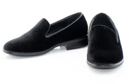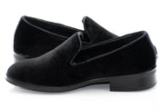 Velvet graces the upper of this derby styled shoe for kids featuring a vintage cap-toe brogue set atop a black outsole.