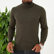 Slip into comfortable designer stylings in this handsome long-sleeved turtleneck with a traditional ribbed cuff design for versatility when paired with casual or semi-formal outfits.