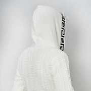 White&Black Cable Knit Grecian Tailored-Fit Hooded Cardigan