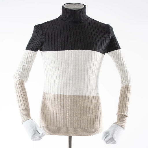 Black, Tan, and Light Gray Tri-Color Turtleneck