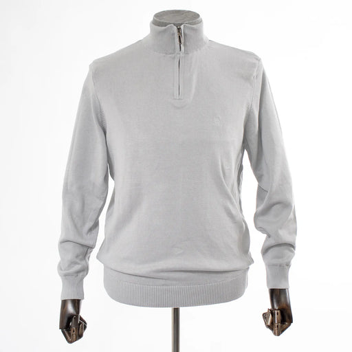 A comfortable pullover design and elegant mockneck lend versatility to this easy-fitting  cotton sweater with a quarter-zip closure and chic ribbed...
