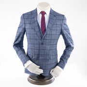 Blue and Burgundy Checked Designer 3-Piece Suit