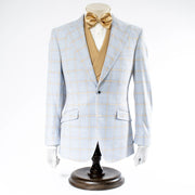 Blue Windowpane Check 3-Piece Tailored-Fit Suit