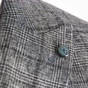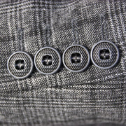 Its smooth dark-gray exterior coloring compliments a black and gray check design and colorful inlay to create a refined look, while peak lapels and a single-breasted styling offer a mix of comfort and formality.