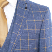 French Blue and Gold Window Pane Slim-Fit 3-Piece Suit
