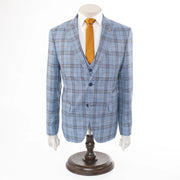 Steel Blue And Chestnut Plaid Slim-Fit 3-Piece Suit