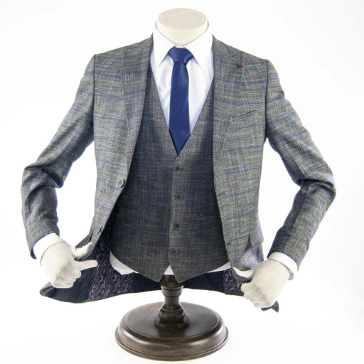 View full detailsDark Gray and Blue Checked Designer 3-Piece Suit