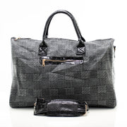 Black Houndstooth Leather Travel Bag