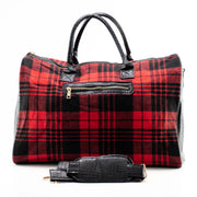 Carry a refined look with you on the go with this attractive and roomy designer satchel featuring a vintage plaid exterior and sleek faux-leather that pairs well with a suit for a business-casual look.