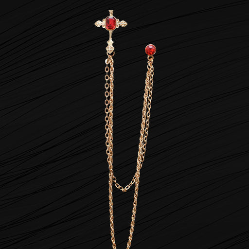 Medium Chain Jeweled Gold Cross Brooch Lapel Pin