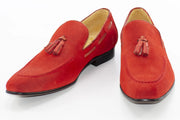 Red Suede Loafer With Matching Tassels