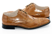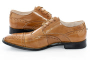 Tan Leather Cap-Toe Medallion Lace-Ups