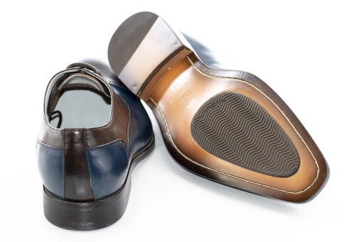 Chocolate Brown And Blue Two-Tone Leather Oxford Lace-Up
