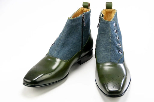 View full detailsOlive Leather and Denim Zip Spat Boots