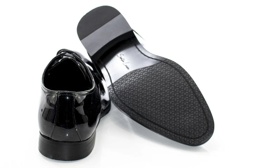 Straightforward and refined, this Derby lace dress shoe features a patent-black leather upper and flexible fit for a handsome accent to wedding tux...