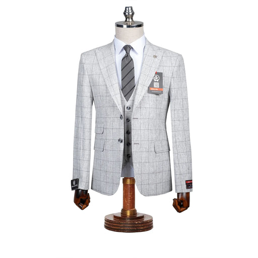 View full detailsRoland | Ash Gray Windowpane 3-Piece Tailored-Fit Suit