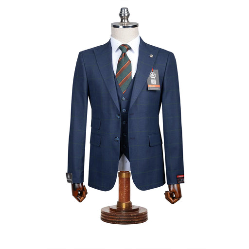 View full detailsRoland | Dark Navy Windowpane 3-Piece Tailored-Fit Suit