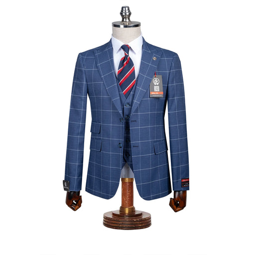 View full detailsRoland | Sapphire Blue Windowpane 3-Piece Tailored-Fit Suit