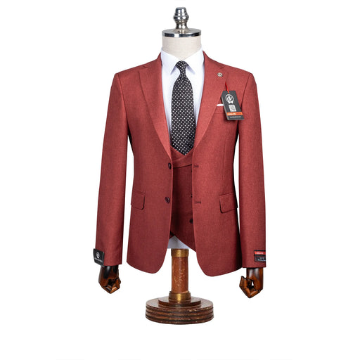 Maximo | Burgundy Twill 3-Piece Tailored-Fit suit